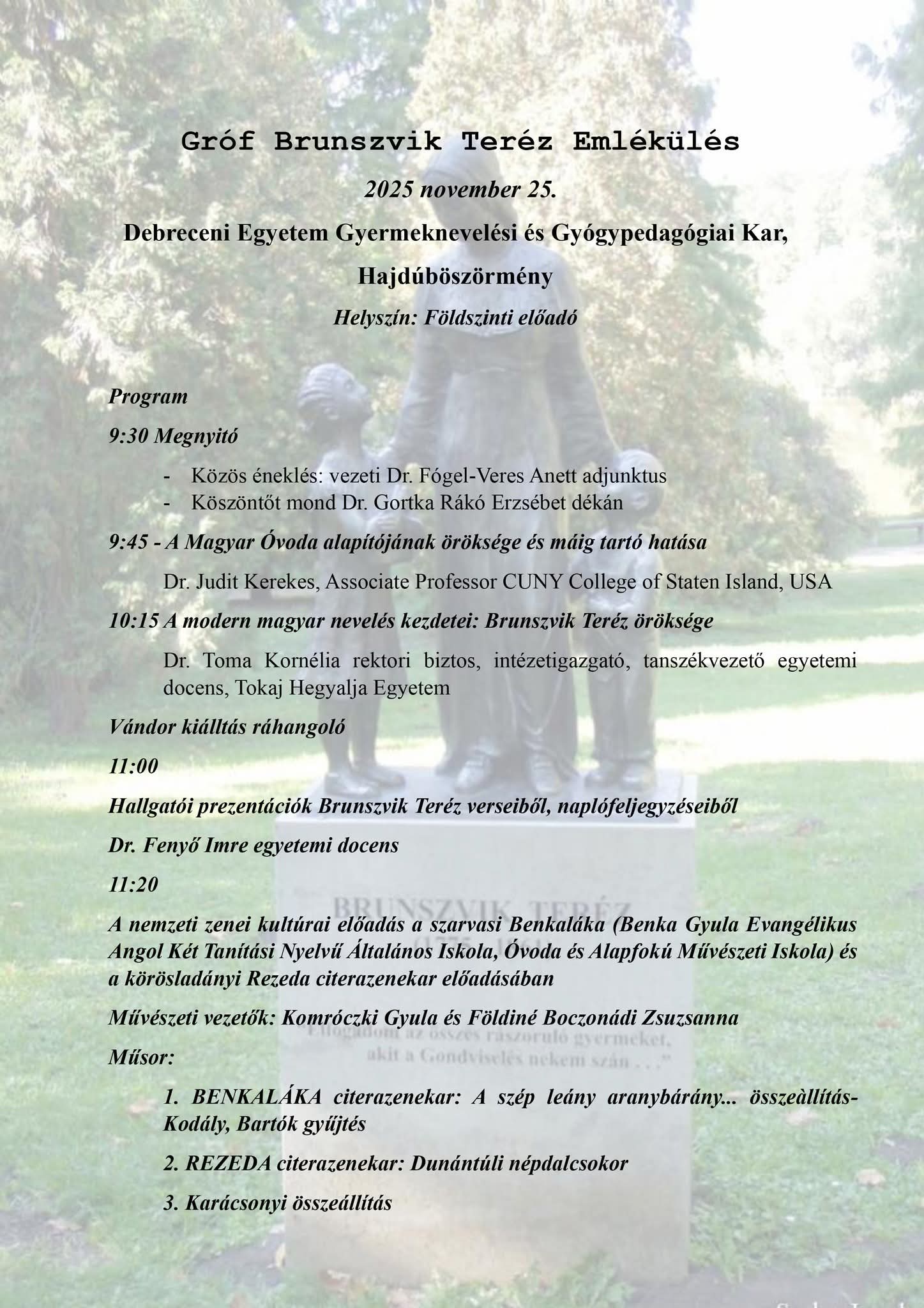 A Debreceni Egyetem és a Tokaj-Hegyalja Egyetem közösen ápolja Brunszvik Teréz pedagógiai örökségét