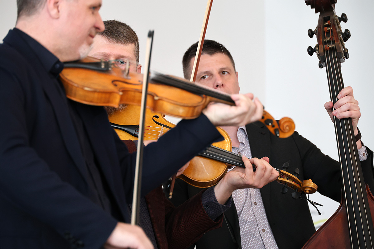 A tudományos tevékenység mellett hangszeres előadóként is ismert Bíró István furulyán és nagybőgőn is játszott a délután további zenei közreműködőivel. Az Orosz Sándorral, Dr. Dragony Gáborral, Makoldi Márton Bendegúzzal kiegészített formáció moldvai, somogyi, bodrogközi dalamokkal is megörvendeztette a népes hallgatóságot.