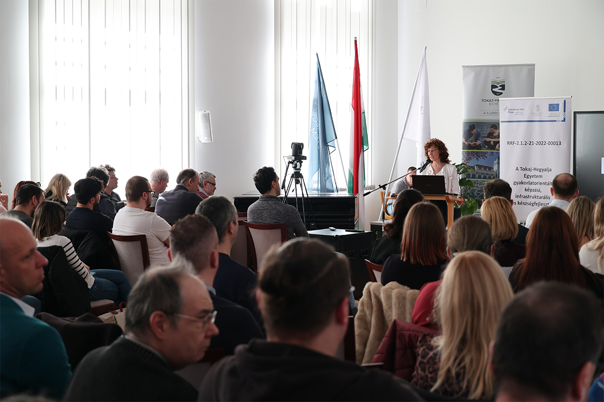 „A mesterséges intelligenciától a tantermi élményig” címmel rendeztek szakmai továbbképzést a Tokaj-Hegyalja Egyetemen 2026. február 24-én. A képzés az RRF-2.1.2-21-2022-00013 azonosító számú „A Tokaj-Hegyalja Egyetem gyakorlatorientált képzési, infrastrukturális- és készségfejlesztése” című projekt keretében, az Európai Unió támogatásával valósult meg, hozzájárulva az intézmény képzési és módszertani megújulásához. A programon a II. Rákóczi Ferenc Kárpátaljai Magyar Egyetem három oktatója – dr. Daróci Ádám, dr. Jakab Enikő és Papp Gabriella – tartott szakmai előadásokat. A programot Dr. Toma Kornélia rektori biztos nyitotta meg, aki szólt a két intézmény között nemrégiben hivatalosan is megerősített együttműködési megállapodás jelentőségéről.