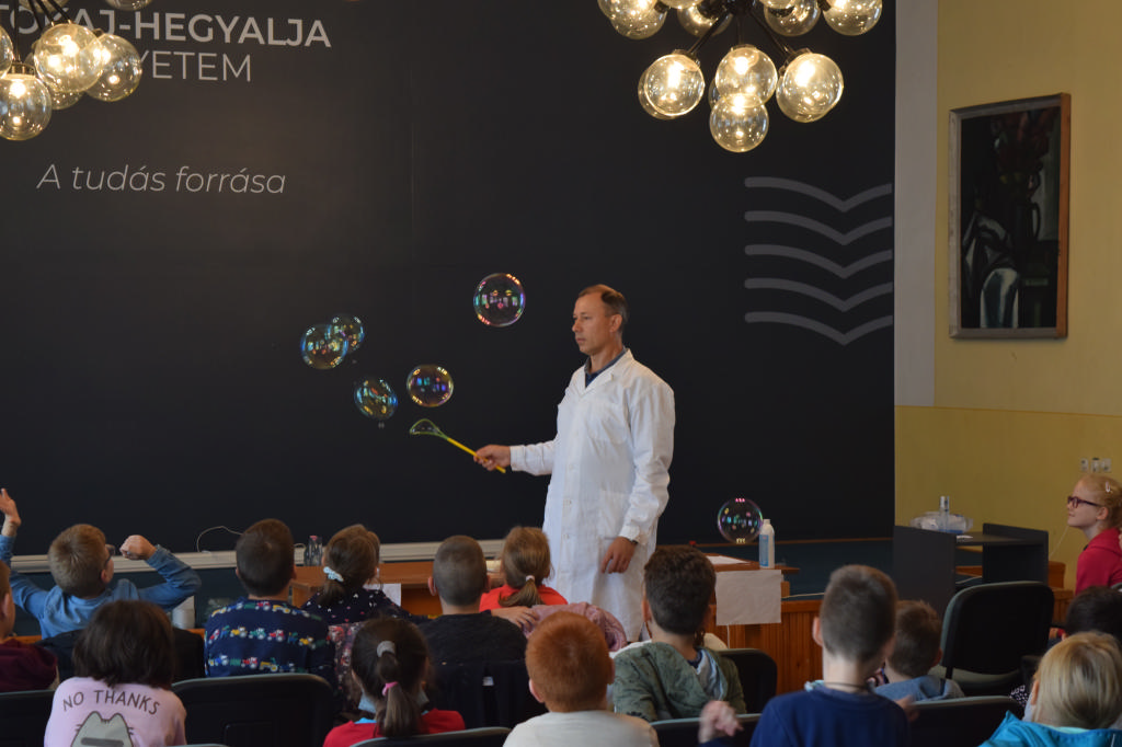 A legnagyobb érdeklődés a természettudományos kísérletek bemutatását kísérte, melyek az élettelen természet jelenségeit célozták meg fizikai és kémiai kölcsönhatások segítségével. Látványosságuk miatt minden érdeklődőnek maradandó élményt nyújtottak a legkisebbektől a legnagyobbakig. A kísérletek egy része az általános iskolai és középiskolai tananyaghoz kapcsolódott. Kiemelt figyelmet kaptak a környezeti elemek, illetve a környezet fenntarthatóságával kapcsolatos kérdések, jelenségek. A felhasznált anyagok közül sok a mindennapi háztartásban is előfordul, így ezek a kísérletek reprodukálhatók otthoni körülmények között, természetesen szülői felügyelettel! A kísérletezés nem csak a természettudományos ismeretek mélyebb megértését, elsajátítását eredményezheti, de a gyerek-szülő kapcsolatot is erősíti a közös élmények révén. A kísérletek másik része speciális kísérleti eszközöket igényelt, melyek nem minden iskolában találhatók meg. Az ezekre való első rácsodálkozás élménye is motiválhatja a tanulókat, résztvevőket a természettudományos tantárgyakra történő fokozottabb odafigyelésre. A kísérletek részben interaktívak voltak, vagyis a közönség köreiből kikerülő személyek segítségével történtek, ami közvetlenebbé tette az előadást, és a megérdemelt jutalmazás sem maradt el.