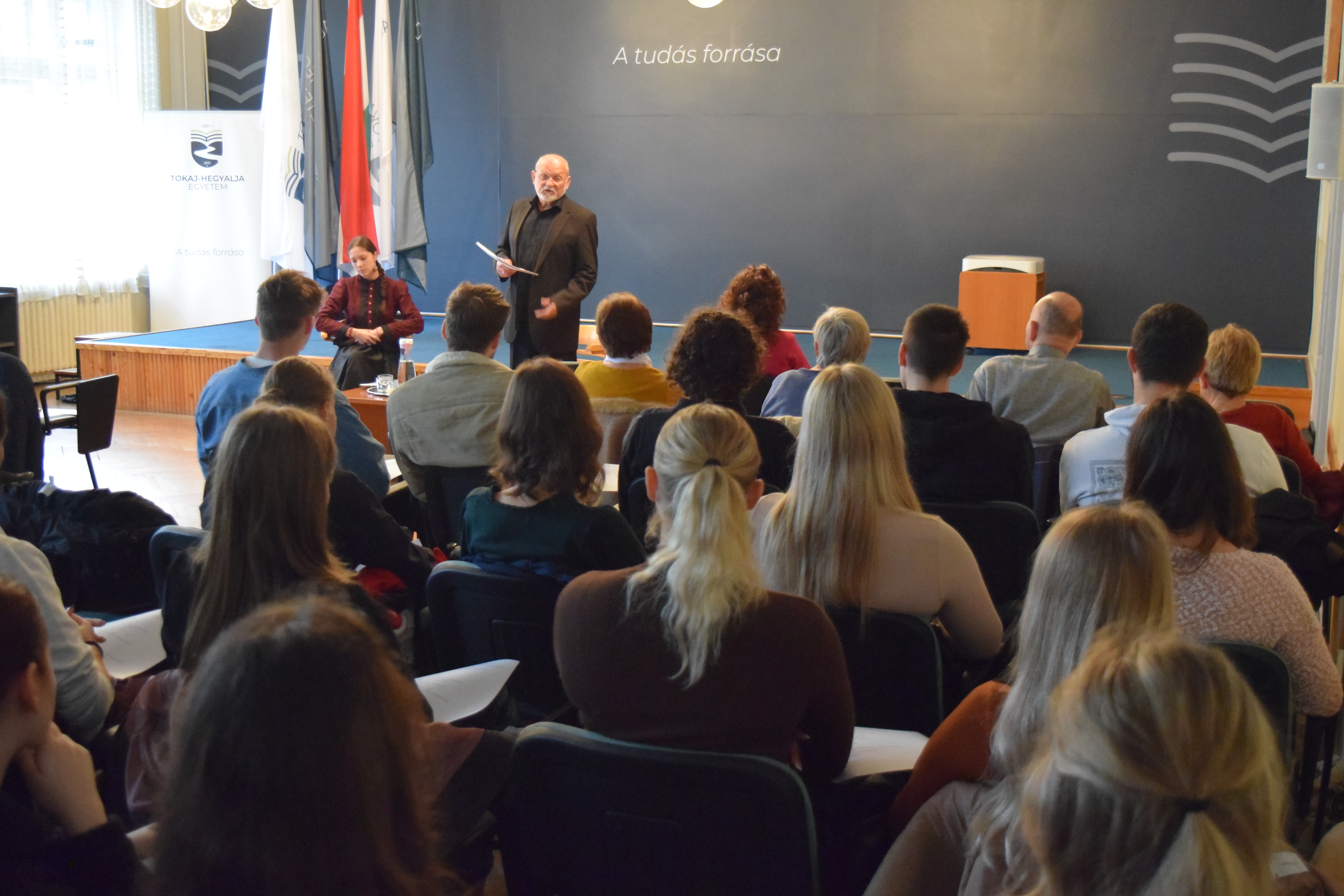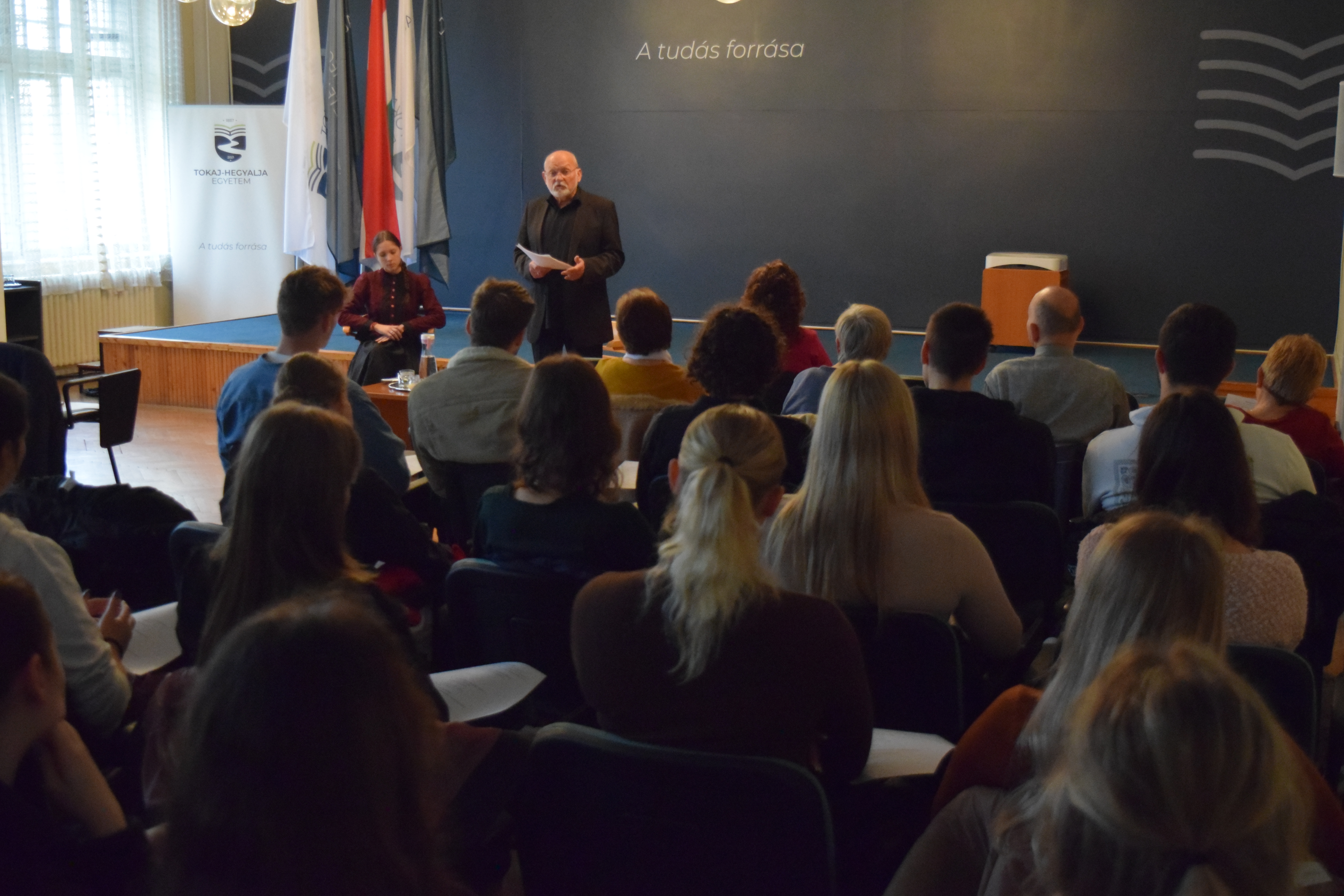 Mindennapi fohászaink versben és népdalbanMindennapi fohászaink címmel tartott irodalmi előadást egyetemünkön Jónás Zoltán 2022. november 10-én, a Díszteremben. A műsor szólt a hitről, örök vágyunkról belső békénkre, az ember életútjának megértéséről, a világban való létünkről, választ keresve kérdéseinkre. Szólt az útkeresésről, magyarságunkba vetett hitünkről, mély, belső meggyőződésünkről – mindennapi fohászainkról. A versek mellett kalotaszegi, székelyföldi, moldvai népdalok hangzottak el Farkas Emese, az egri Dobó István Gimnázium diákja előadásában. A program a Magyar Művészeti Akadémia támogatásával valósult meg, a Magyar Tudomány Ünnepe programsorozat részeként.