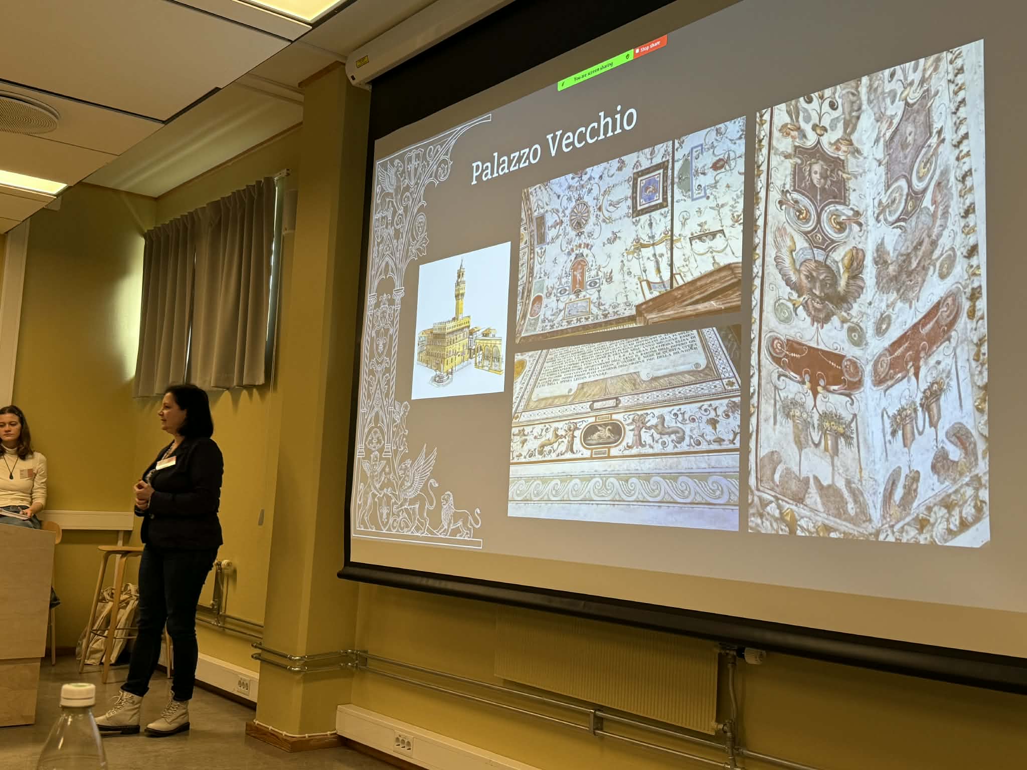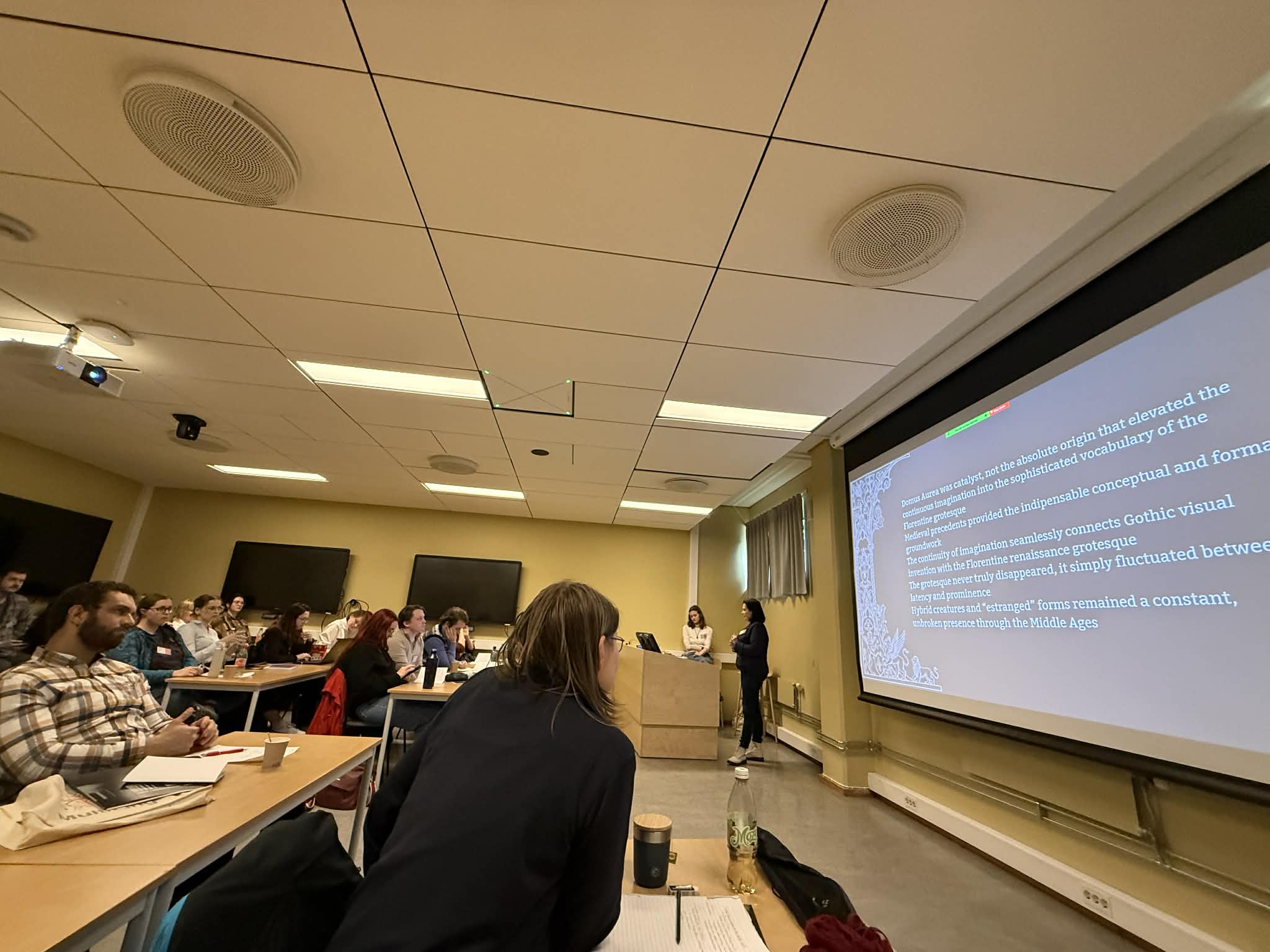 Pacsuta Szilvia előadása a The Continuity of Imagination from Medieval Visual Culture to the Florentine Renaissance Grotesque címet kapta. Prezentációjában a vizuális kultúra folyamatosságára fókuszált, azt bemutatva, hogy a középkori művészet képzeletvilága és formakincse hogyan transzformálódott a firenzei reneszánsz groteszk díszítőművészetébe.
