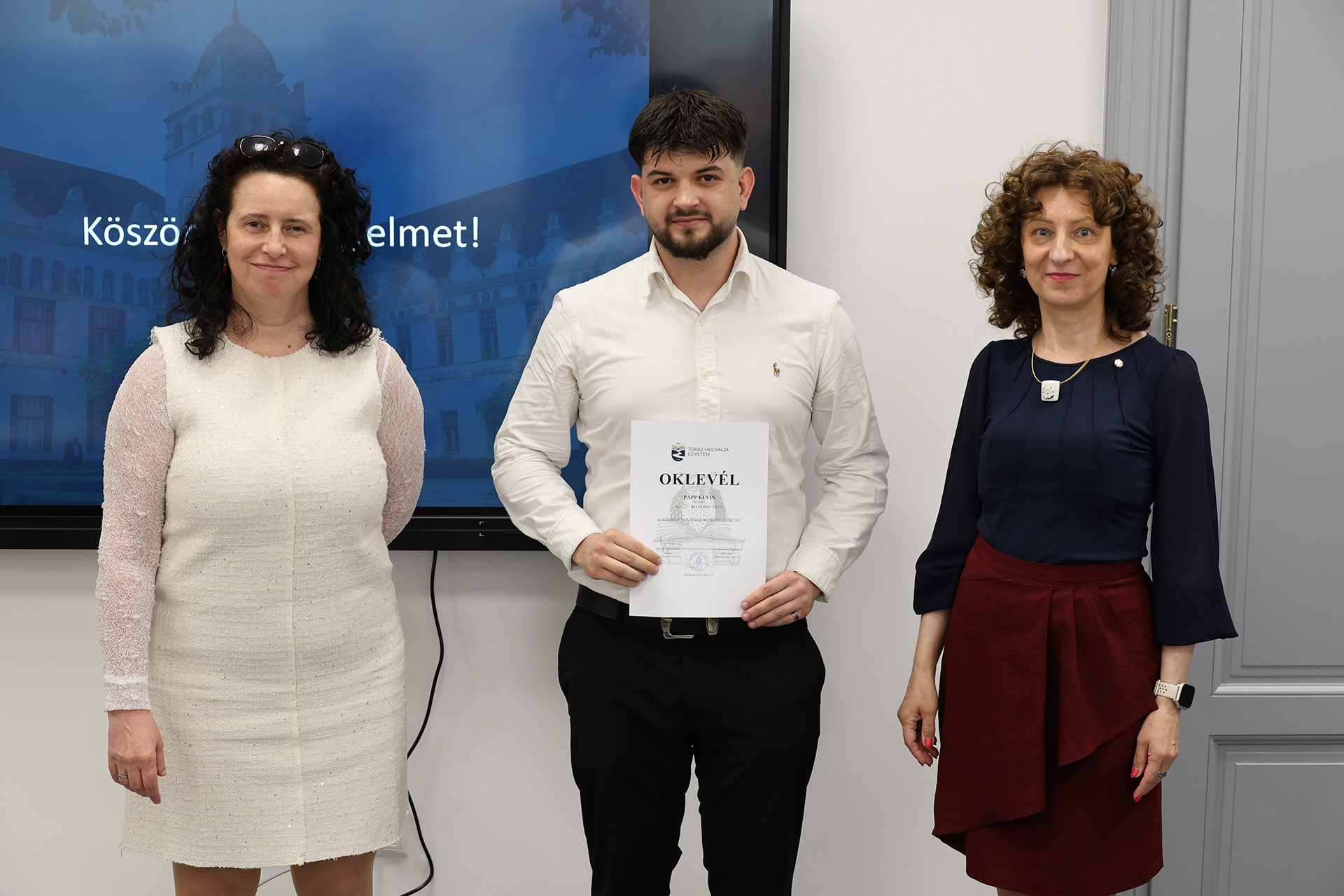 A helyezést elért és az országos versenyre továbbjutott, illetve a különdíjban részesült hallgatóknak az 1. számú bizottságban Dr. habil. Remenyik Bulcsú intézetigazgató, tanszékvezető, egyetemi docens (elnök) és Dr. Kökényesi Nikoletta, a 2. számú bizottságban Dr. Podlovics Éva Lívia egyetemi docens (elnök), Dr. Toma Kornélia rektori biztos és Dr. Kökényesi Nikoletta adta át az elismerő okleveleket, ajándékutalványokat. Elismerő oklevelet nyújtottak át minden induló témavezetőjének.