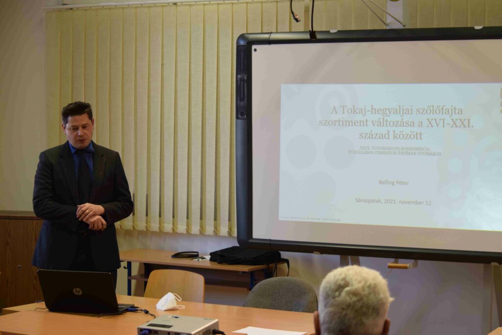A Magyar Comenius Társaság bázisintézményében, a Tokaj-Hegyalja Egyetemen rendezte meg 2021. évi rendes közgyűléssel egybekötött XXIX. Tudományos Konferenciáját, melyen Dr. habil. Kelemen Judit alelnök köszöntötte a megjelenteket, majd Prof. Dr. Bolvári-Takács Gábor elnök megnyitotta a rendezvényt. A Társaság titkára, Dr. Toma Kornélia bemutatta a szerkesztésében frissen megjelent Bibliotheca Comeniana 22. kötetet. A plenáris előadást Dr. Juhász Erika (DE) tartotta Bor és Kultúra címmel. Tanszékvezető asszony a bor irodalommal, képzőművészettel, valamint filmmel való kapcsolatáról szólt, majd a Debreceni Boroskola működésébe nyújtott bepillantást. Ezt követően szekcióülések keretében folytatódott a tanácskozás. A Szőlőkultúra, valamint az Évszázados comeniusi értékek nyomában szekciókban hangzottak el a következő előadások: