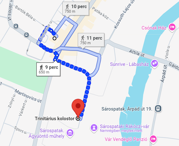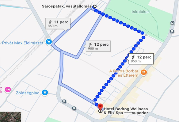 Tömegközlekedéssel érkezők számára a következő útvonal javasolt a sárospataki vasútállomásról a Hotel irányában