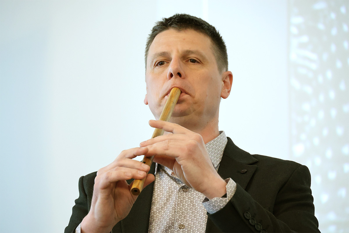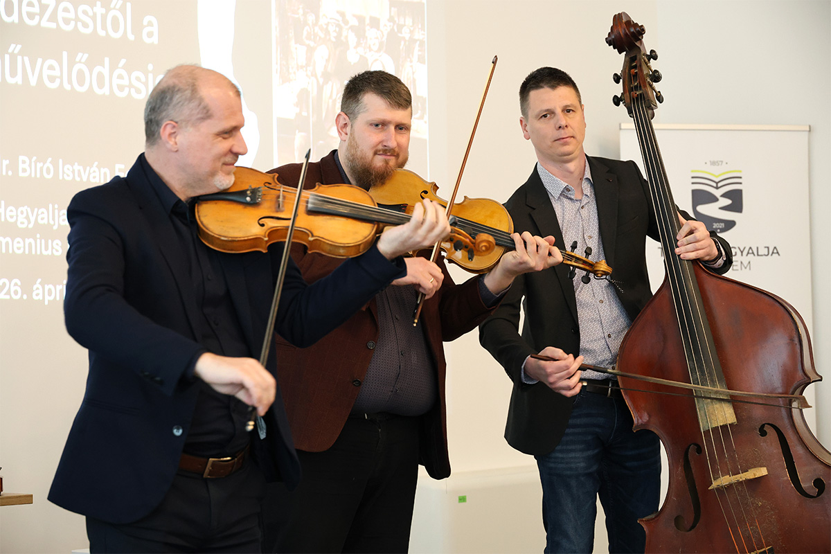 A tudományos tevékenység mellett hangszeres előadóként is ismert Bíró István furulyán és nagybőgőn is játszott a délután további zenei közreműködőivel. Az Orosz Sándorral, Dr. Dragony Gáborral, Makoldi Márton Bendegúzzal kiegészített formáció moldvai, somogyi, bodrogközi dalamokkal is megörvendeztette a népes hallgatóságot.