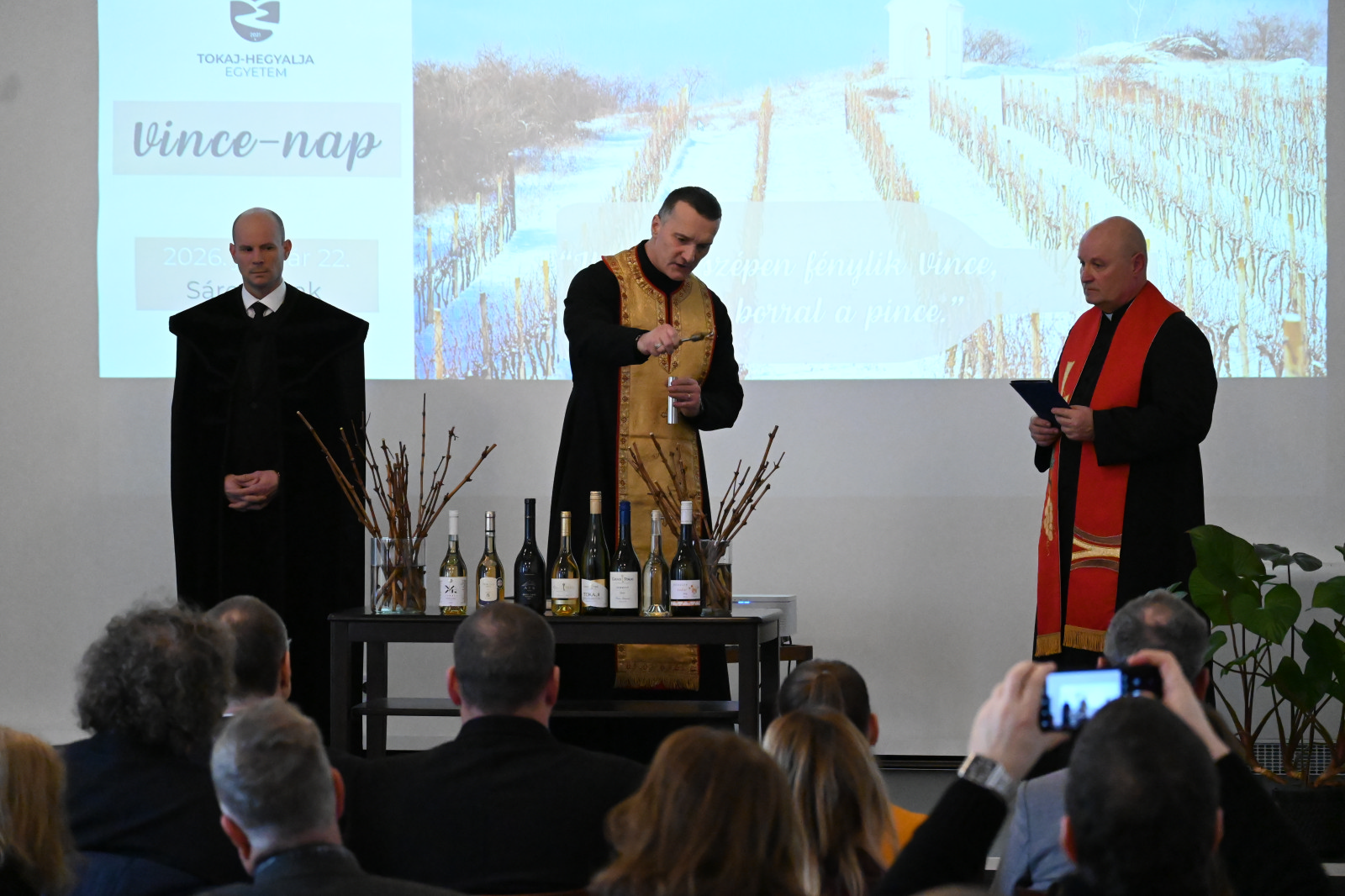 Január 22-én, Szent Vince napján ismét ünnepi eseménynek adott otthont a Tokaj-Hegyalja Egyetem: az intézmény második alkalommal rendezte meg a Vince-napi szőlővessző- és újboráldást a sárospataki Lechner-épület dísztermében.