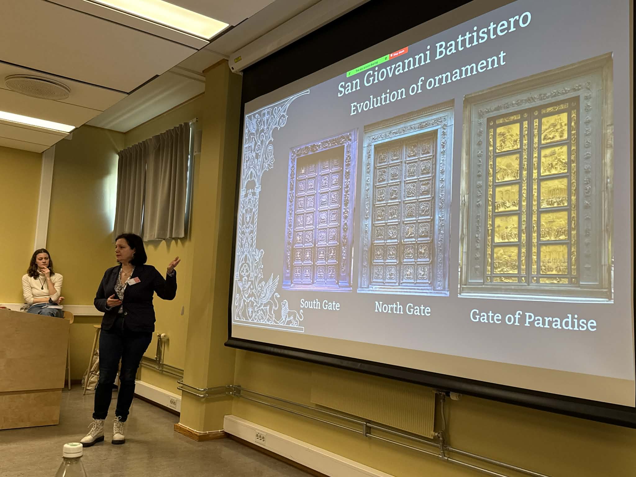 Pacsuta Szilvia előadása a The Continuity of Imagination from Medieval Visual Culture to the Florentine Renaissance Grotesque címet kapta. Prezentációjában a vizuális kultúra folyamatosságára fókuszált, azt bemutatva, hogy a középkori művészet képzeletvilága és formakincse hogyan transzformálódott a firenzei reneszánsz groteszk díszítőművészetébe.