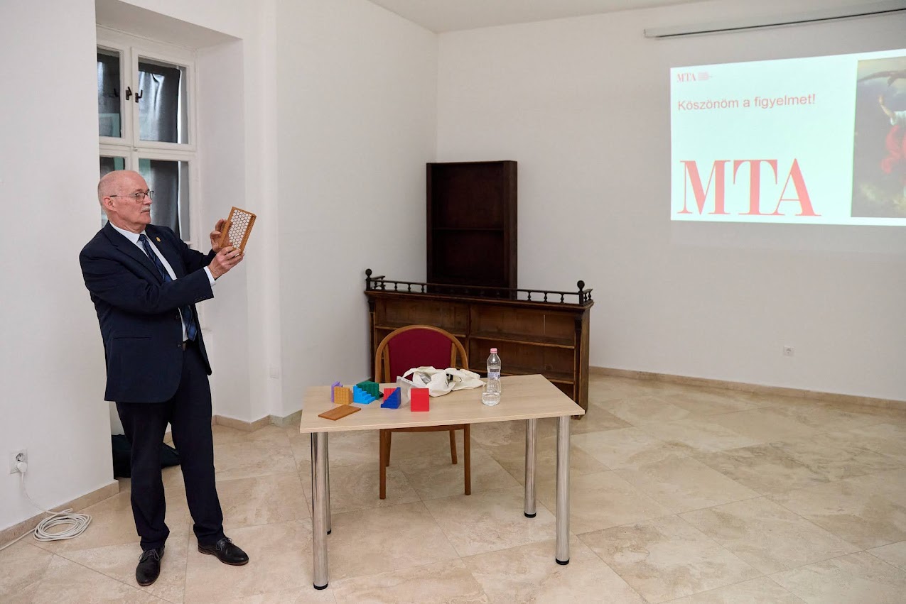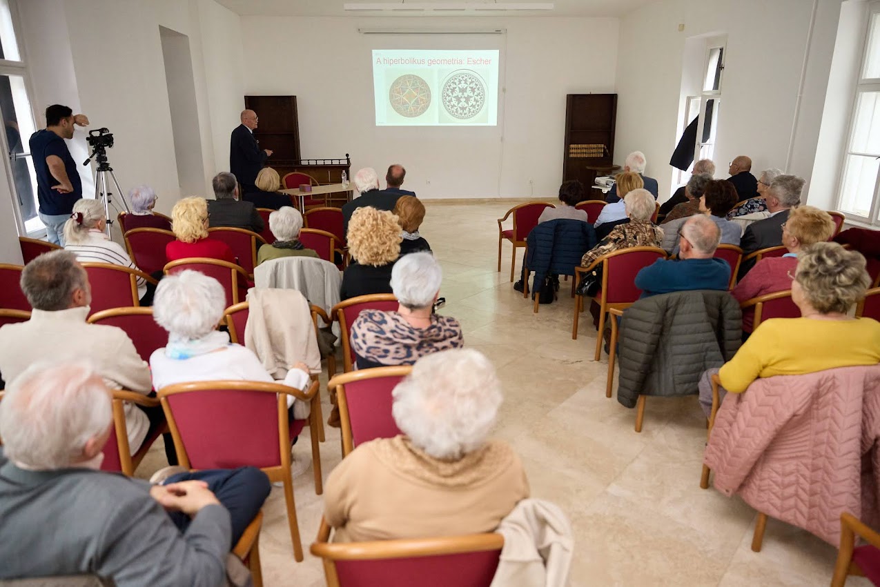Páles Zsolt akadémikus: „A matematika és a művészetek” című vetítettképes előadásában bemutatott néhány alapvető matematikai összefüggést, törvényszerűséget, amelyek az ókortól kezdve megihlették azokat a költőket és képzőművészeket (pl.: Victor Vasarely), akik értettek a matematikusok (pl.: Godfrey Harold Hardy, Penrose) nyelvén és viszont.