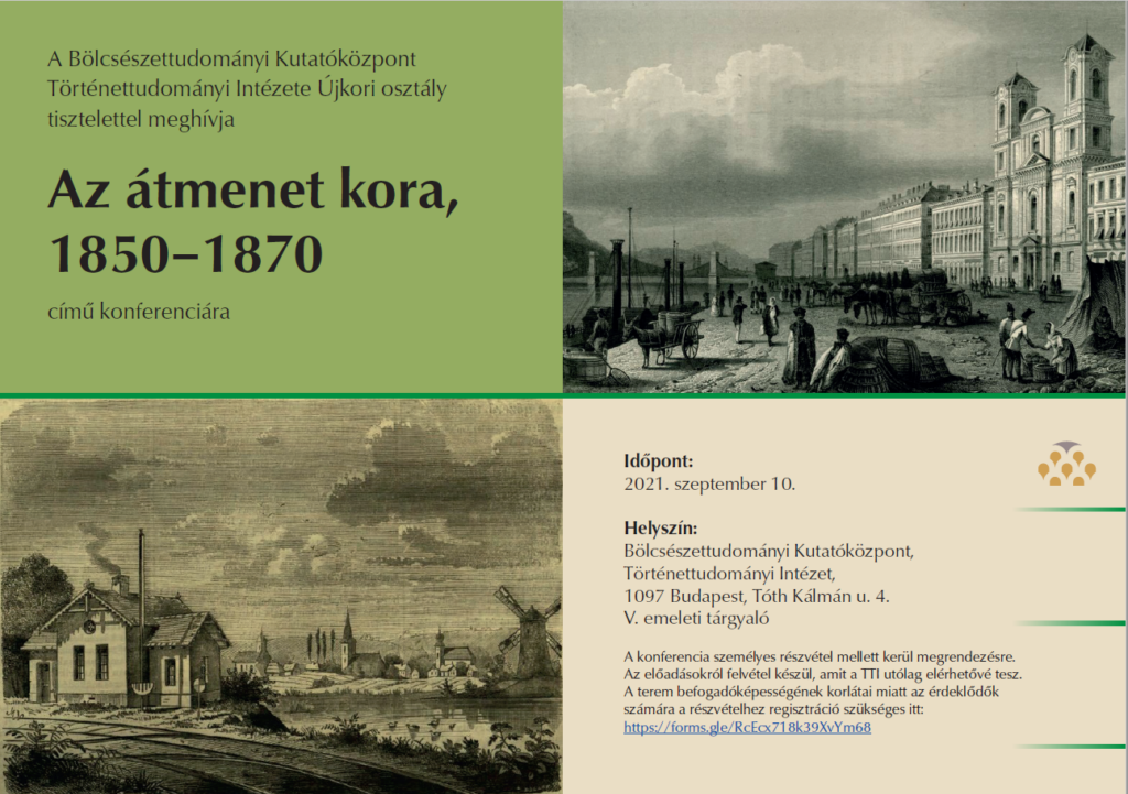 A Bölcsészettudományi Kutatóközpont Történettudományi Intézete Újkori osztálya Az átmenet kora, 1850–1870 címmel tartott konferenciát szeptember 10-én.