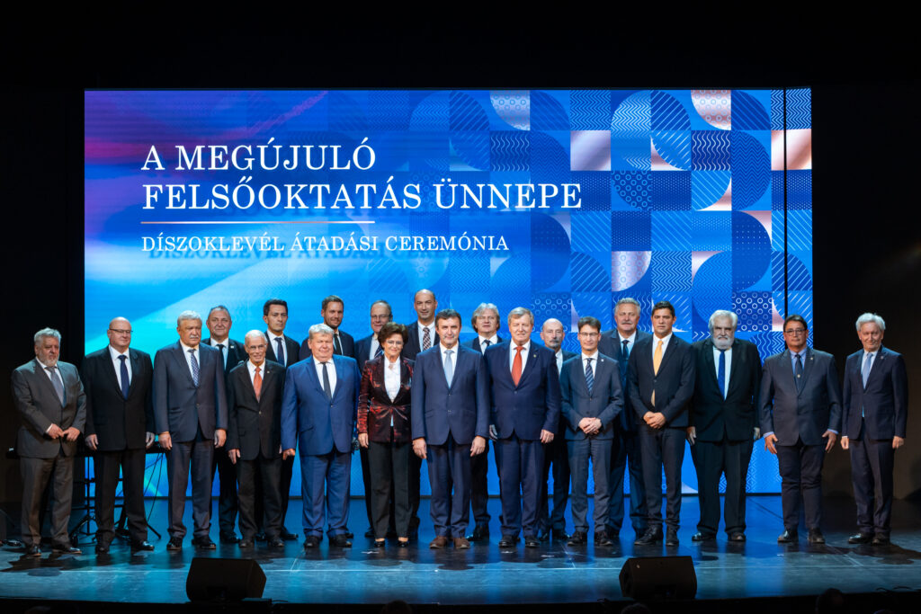 A rendezvényen a felsőoktatásban modellváltó 21 egyetem vezetői vehették át ünnepélyes ker...
